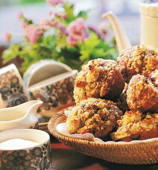 - Three-quarters fill 12-16 well-greased muffin tins. Sprinkle a teaspoon of the crumble topping over each muffin if using.