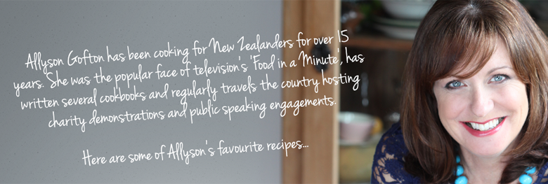 Allyson Gofton has been cooking for New Zealanders for over 15 years. She was the popular face of television's 'Food in a Minute', has written several cookbooks and regularly travels the country hosting charity demonstrations and public speaking engagements.