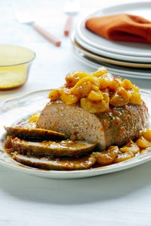 Tandoori-inspired roast chicken with pear and tamarind chutney