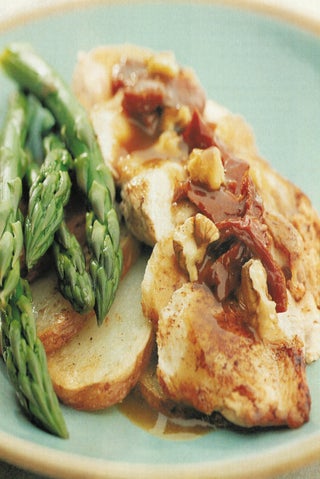 - Serve the chicken on your favourite vegetables with the sauce and garnished with roasted walnuts.